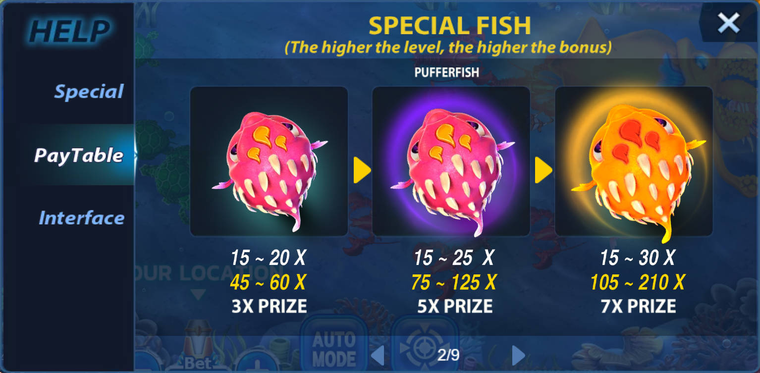 Shooting at the Giant Octopus triggers a special bonus wheel event. After spinning the bonus wheel, players receive the marked bonus amount, with the maximum bonus reaching an impressive 600 times their bet.